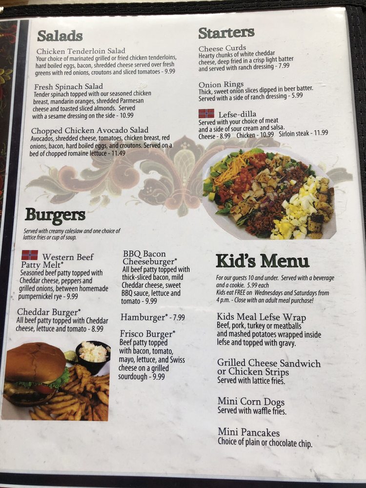 your choice of fresh beef roast, pork roast, turkey breast or norwegian meatballs and real mashed potatoes rolled up inside lefse. topped with our homemade gravy